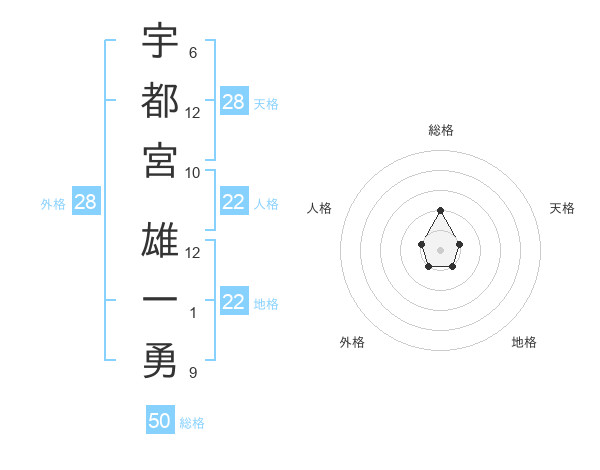 宇都宮 雄一勇さんの総格は50画の2点!