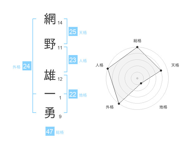 網野 雄一勇さんを姓名の画数から五運を鑑定