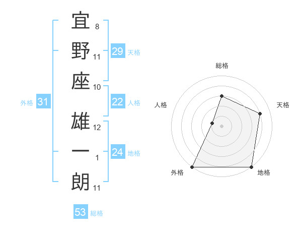 宜野座 雄一朗さんを姓名の画数から五運を鑑定