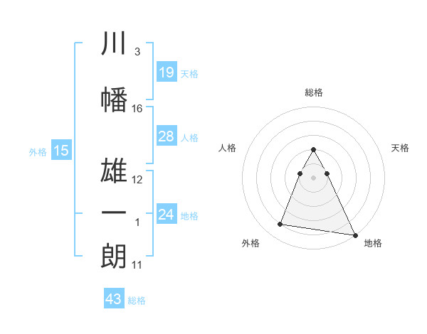 川幡 雄一朗さんの地格は24画の5点!