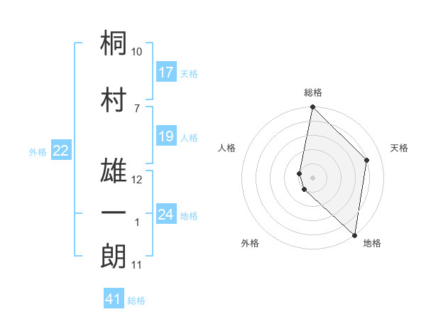 桐村 雄一朗さんを姓名の画数から五運を鑑定