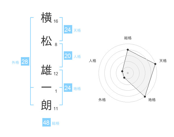 横松 雄一朗さんの総格は48画の4点!