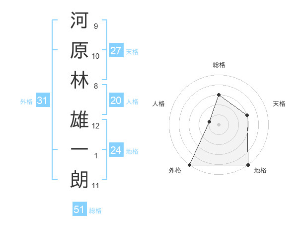 河原林 雄一朗さんの総格は51画の3点!