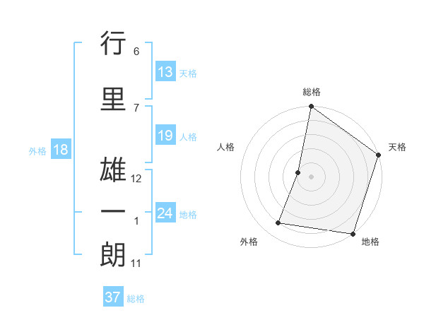 行里 雄一朗さんを姓名の画数から五運を鑑定