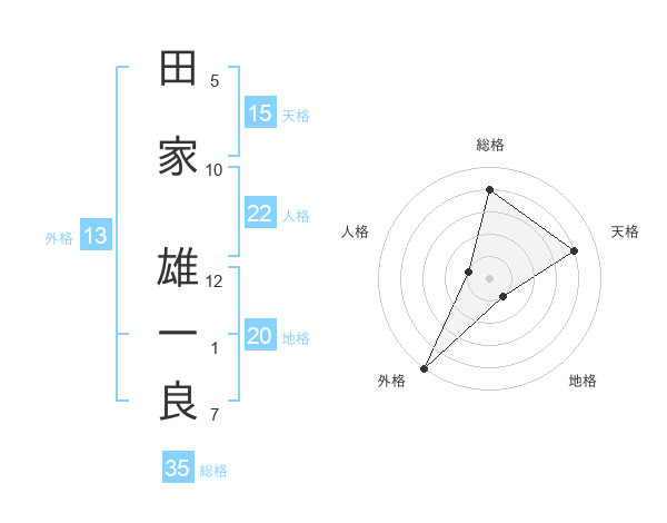 田家 雄一良さんを姓名の画数から五運を鑑定