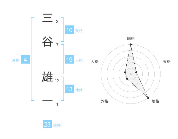 三谷 雄一さんを姓名の画数から五運を鑑定
