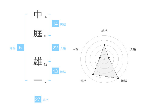 中庭 雄一さんを姓名の画数から五運を鑑定