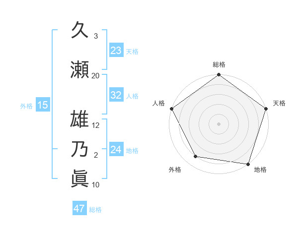 久瀬 雄乃眞さんの天格は23画の5点!