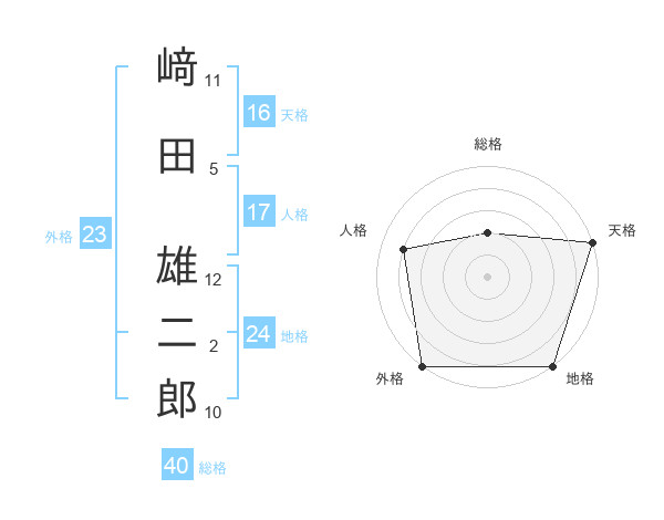 﨑田 雄二郎さんを姓名の画数から五運を鑑定
