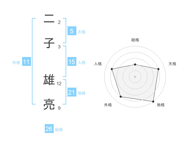 二子 雄亮さんの人格は15画の4点!