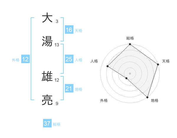大湯 雄亮さんの総格は37画の5点!