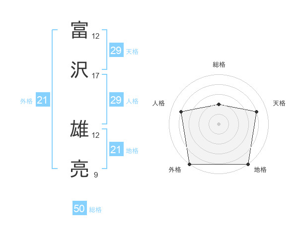 富沢 雄亮さんの総格は50画の2点!