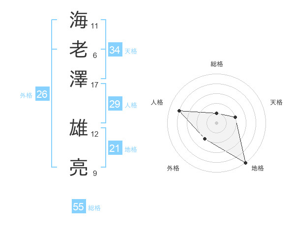 海老澤 雄亮さんの総格は55画の1点!