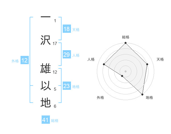 一沢 雄以地さんを姓名の画数から五運を鑑定