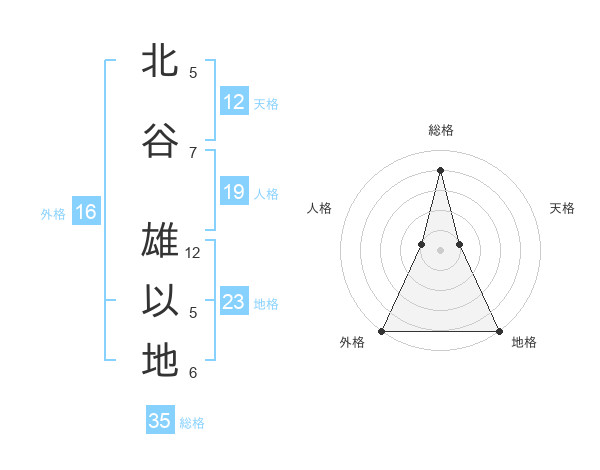 北谷 雄以地さんの総格は35画の4点!