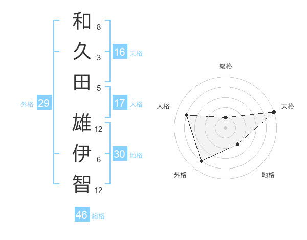 和久田 雄伊智さんを姓名の画数から五運を鑑定