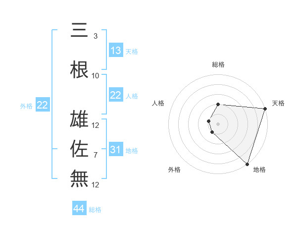 三根 雄佐無さんを姓名の画数から五運を鑑定