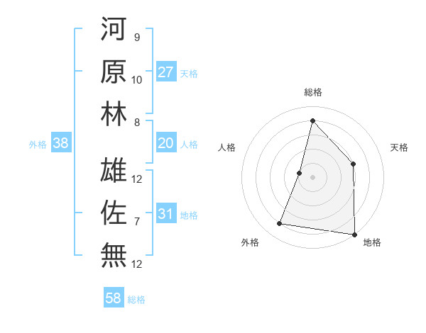 河原林 雄佐無さんを姓名の画数から五運を鑑定