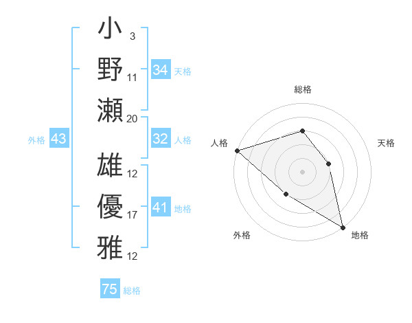 小野瀬 雄優雅さんを姓名の画数から五運を鑑定