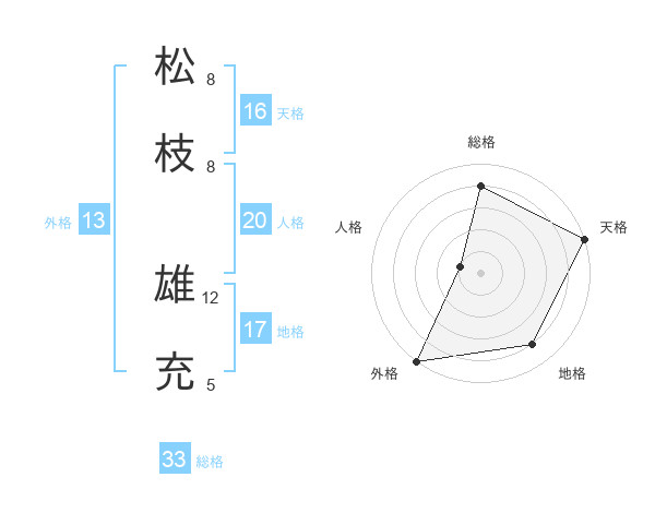 松枝 雄充さんの総格は33画の4点!