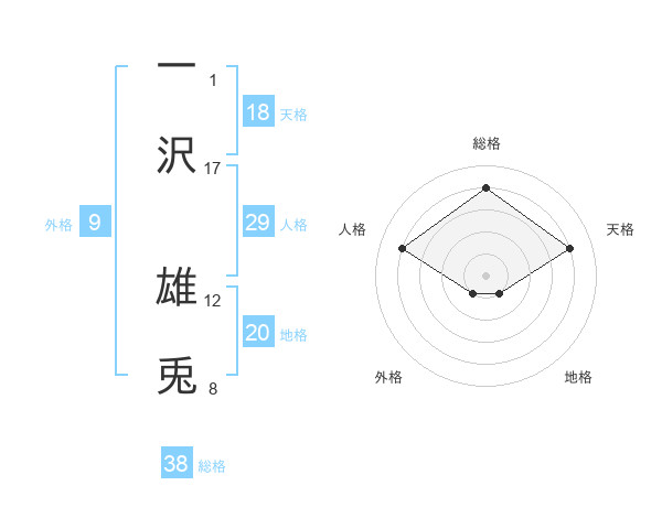 一沢 雄兎さんの総格は38画の4点!