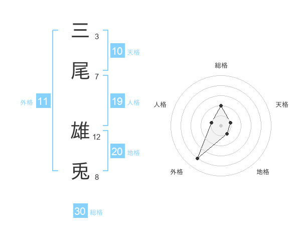 三尾 雄兎さんの地格は20画の1点!