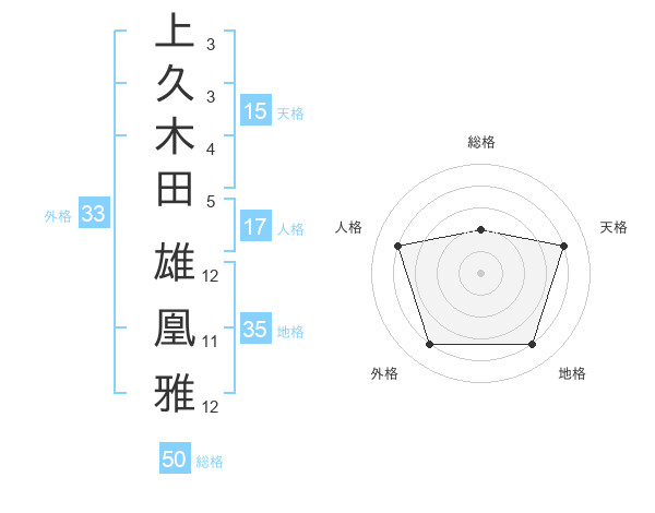 上久木田 雄凰雅さんの総格は50画の2点!