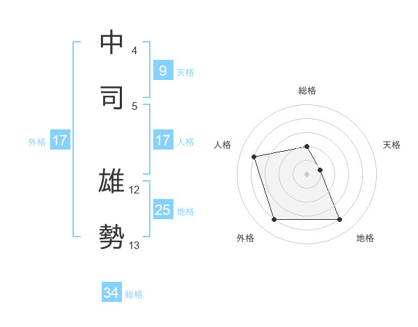 中司 雄勢さんの外格は17画の4点!