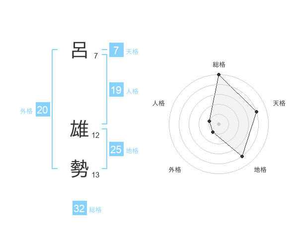 呂 雄勢さんの総格は32画の5点!