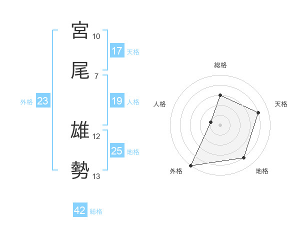 宮尾 雄勢さんの地格は25画の4点!