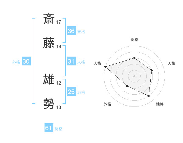 斎藤 雄勢さんを姓名の画数から五運を鑑定