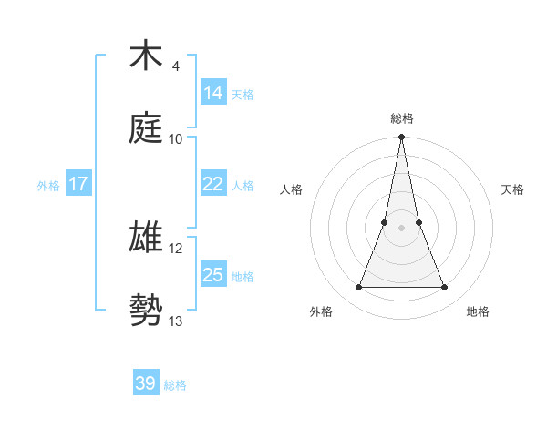 木庭 雄勢さんの総格は39画の5点!