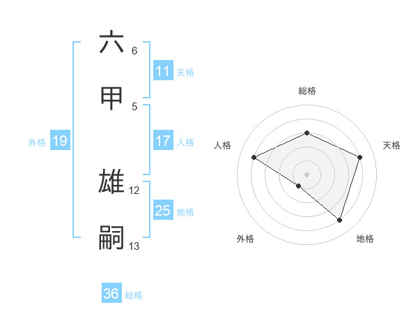 六甲 雄嗣さんの天格は11画の4点!