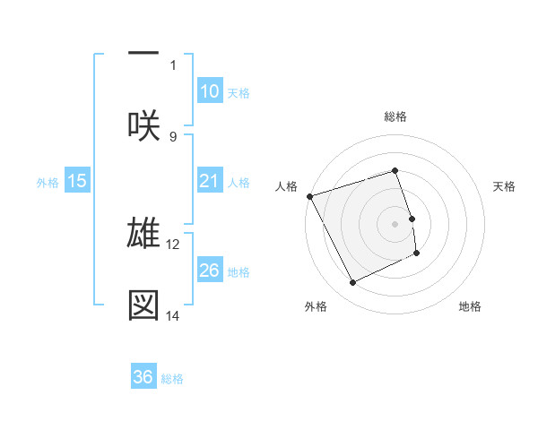一咲 雄図さんを姓名の画数から五運を鑑定