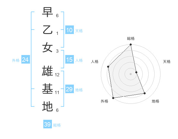 早乙女 雄基地さんを姓名の画数から五運を鑑定