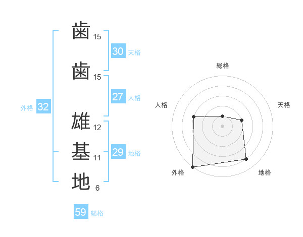 歯歯 雄基地さんの総格は59画の1点