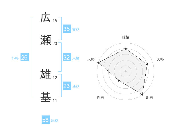広瀬 雄基さんの総格は58画の4点!
