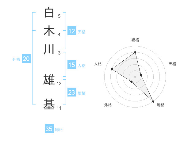 白木川 雄基さんを姓名の画数から五運を鑑定