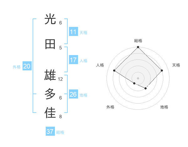 光田 雄多佳さんを姓名の画数から五運を鑑定