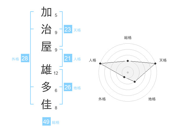 加治屋 雄多佳さんを姓名の画数から五運を鑑定