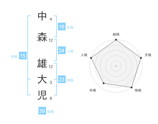 中森 雄大児さんの総格は39画の5点!
