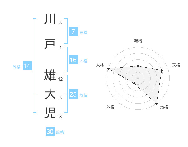 川戸 雄大児さんの総格は30画の2点!