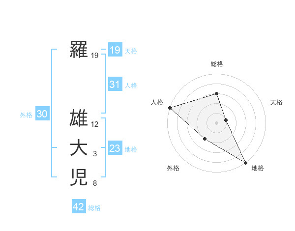羅 雄大児さんの外格は30画の2点!