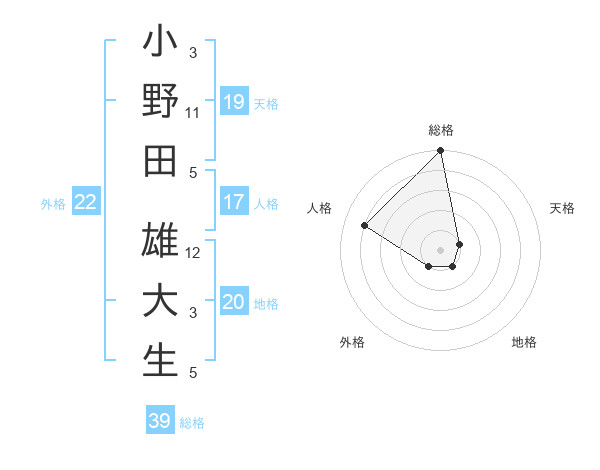 小野田 雄大生さんの総格は39画の5点!
