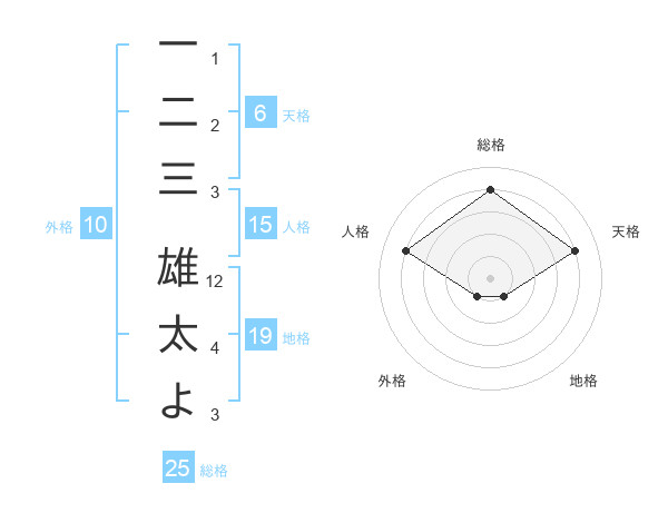 一二三 雄太よさんを姓名の画数から五運を鑑定