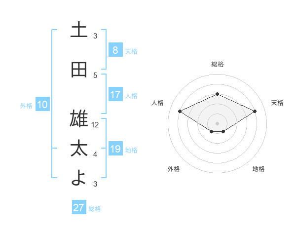 土田 雄太よさんを姓名の画数から五運を鑑定