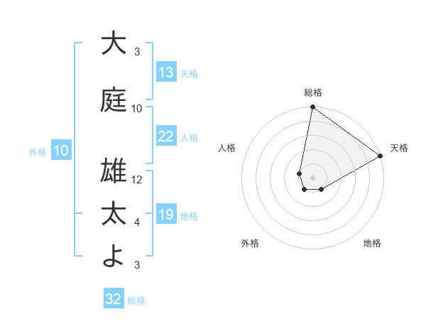 大庭 雄太よさんを姓名の画数から五運を鑑定