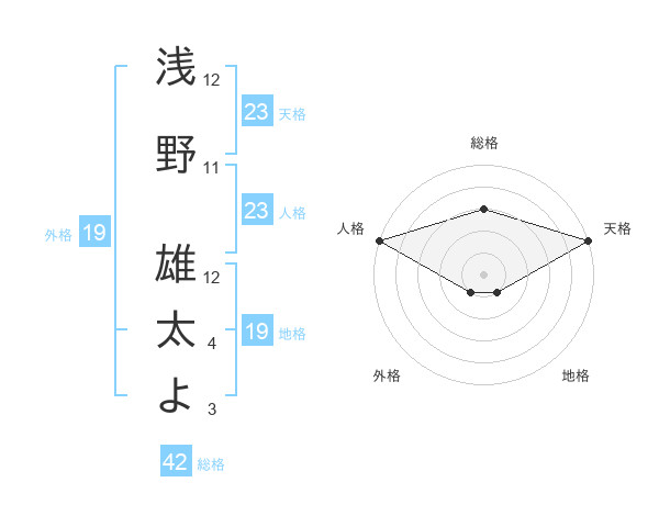 浅野 雄太よさんを姓名の画数から五運を鑑定