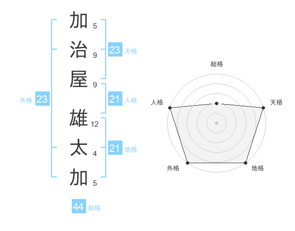加治屋 雄太加さんの天格は23画の5点