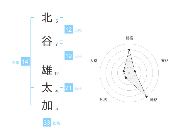 北谷 雄太加さんを姓名の画数から五運を鑑定